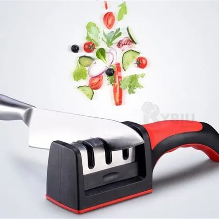 Este afilador de cuchillos manual de tres etapas permite afilar tus cuchillos y tijeras de manera rápida y eficiente, convirtiéndose en un accesorio esencial en tu cocina.