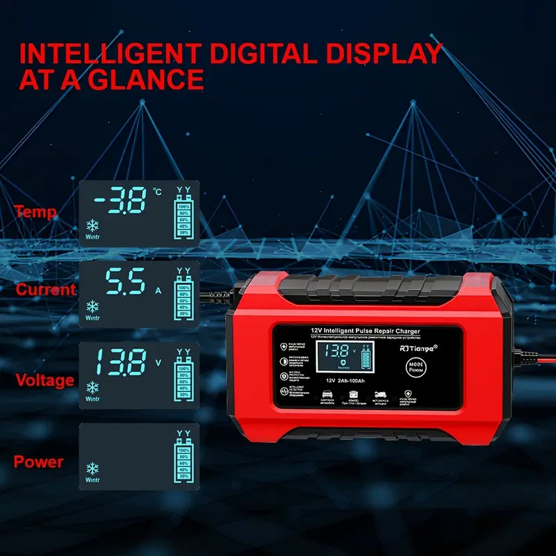 Este cargador de batería inteligente automático tiene protección de circuito incorporada contra polaridad inversa, chispas, sobrecarga, sobrecorriente, circuito abierto, cortocircuito y sobrecalentamiento.