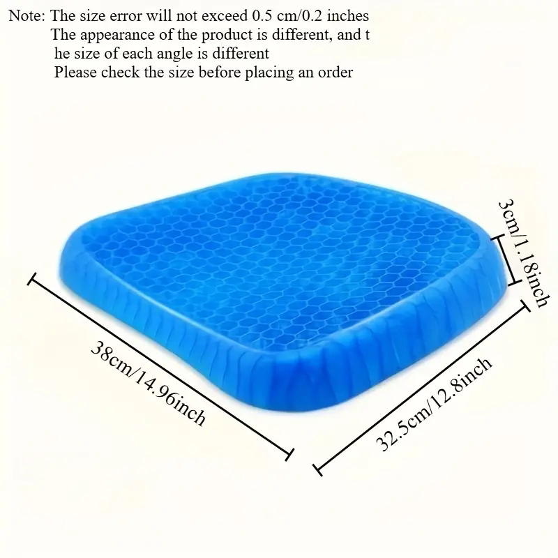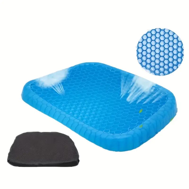 Cojín de asiento flexible transpirable con diseño de panal que proporciona absorción y apoyo para una buena postura al sentarse, ofreciendo máxima atenuación y comodidad. Especialmente diseñado con polímeros de gel superelásticos.