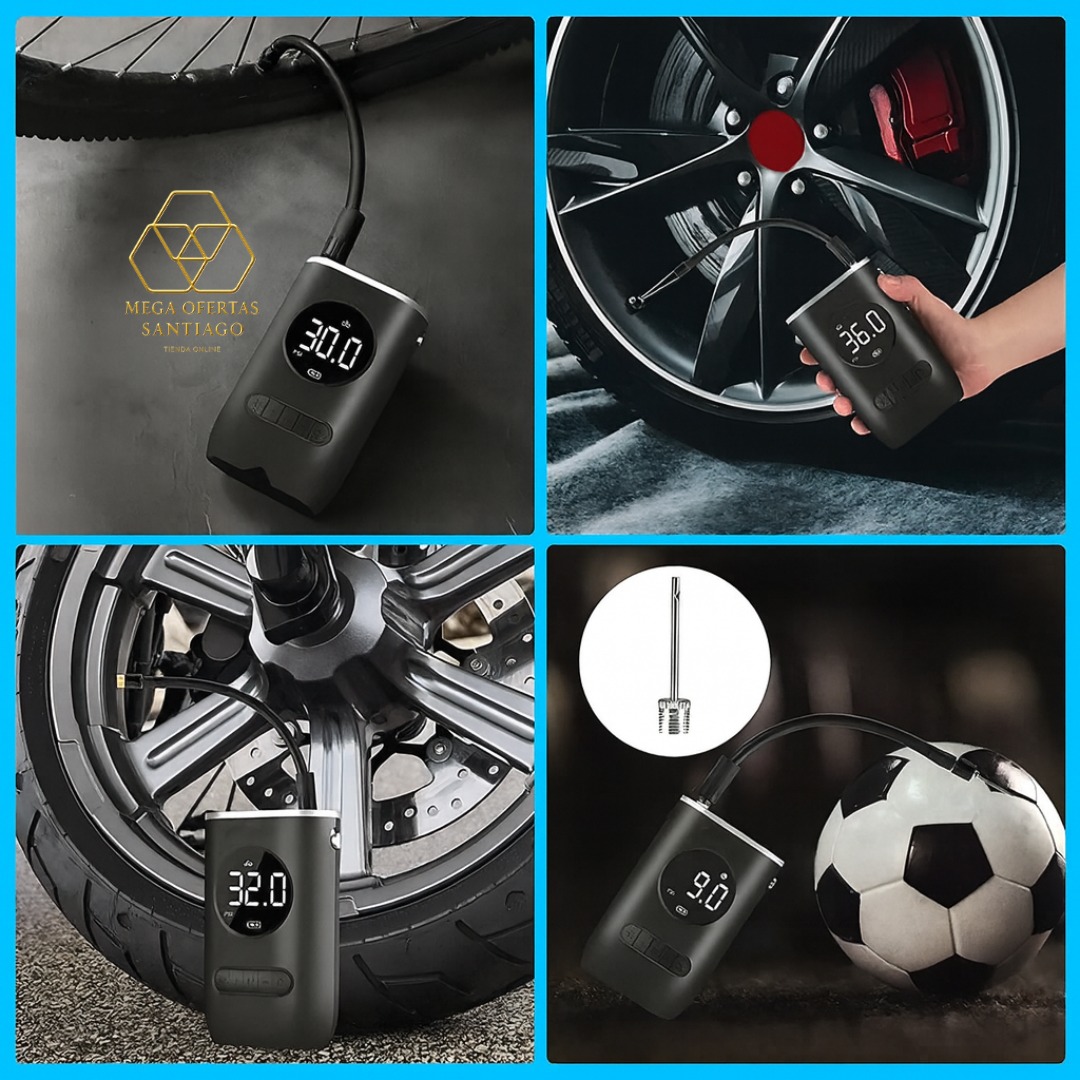 Bomba de aire multifunción inalámbrica adecuada para inflar neumáticos de coches, motos, bicicletas, balones, flotadores de natación y objetos inflables.