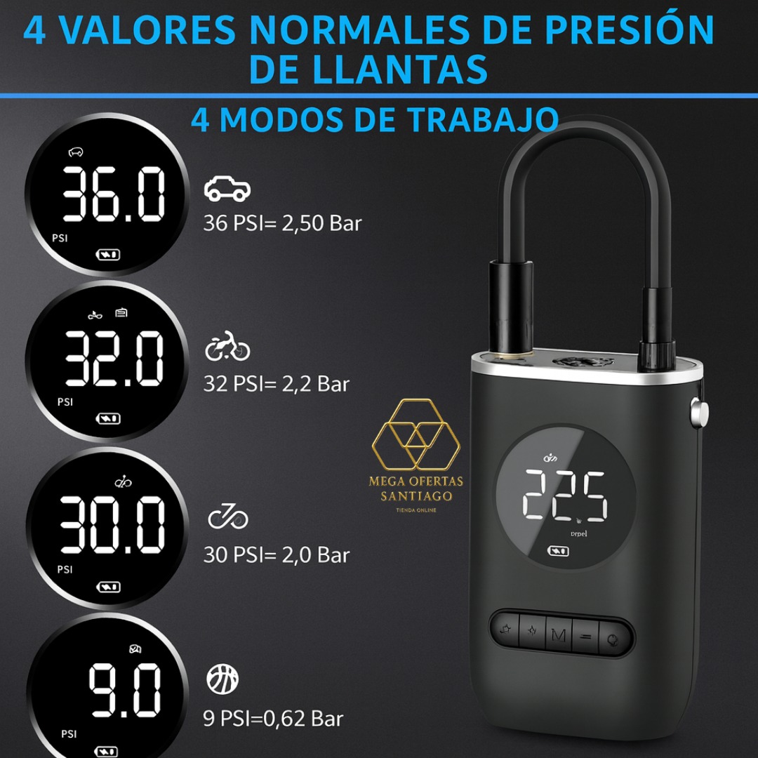 Capacidad para ajustar la presión de los neumáticos de 0 a 150 PSI en solo 20 segundos.
