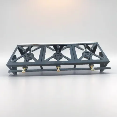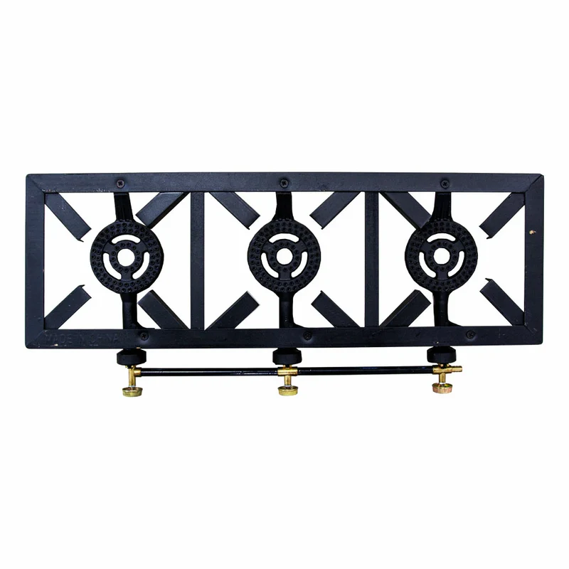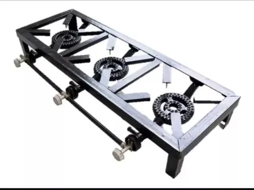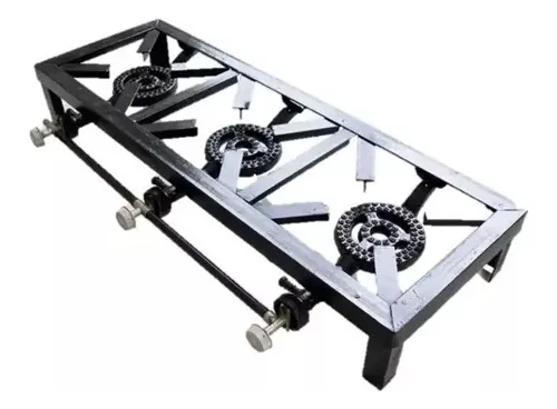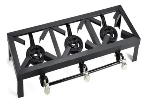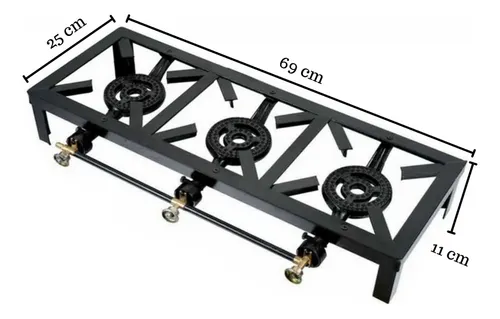 Cocina Fogon de TRES HornillaS a Gas elaborado en acero, gracias al diseño de su quemador hace mas eficiente la distribucion del calor en ollas y calderos de gran tamaño .
